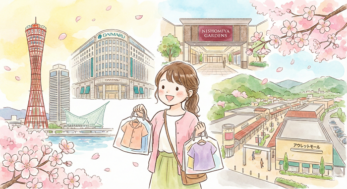 「お買い物に行くなら、やっぱり三宮?それとも西宮ガーデンズ?」 「大丸神戸店はおしゃれだけど、私に合うサイズの服なんてあるのかな…」 「三田のアウトレット、ハイブランドのXSサイズを安く手に入れたい!」