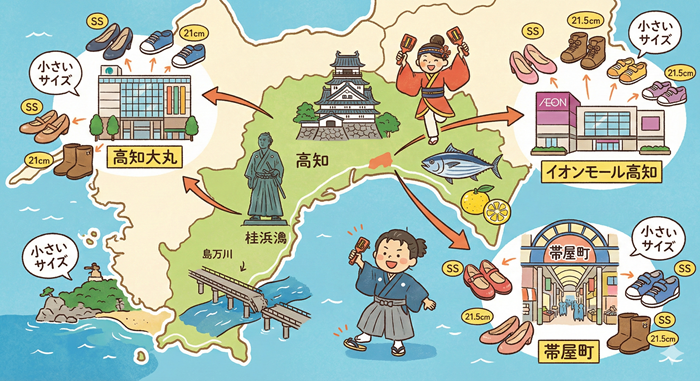 この記事では、高知県で小さいサイズの靴を見つけるためのエリア別攻略法と、日曜市やよさこい祭りも快適に楽しめる賢い選び方について解説します。