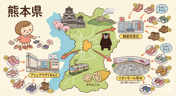 この記事では、熊本県で小さいサイズの靴を見つけるためのエリア別攻略法と、市電や車を駆使して快適に買い物をするための賢い選び方について解説します。