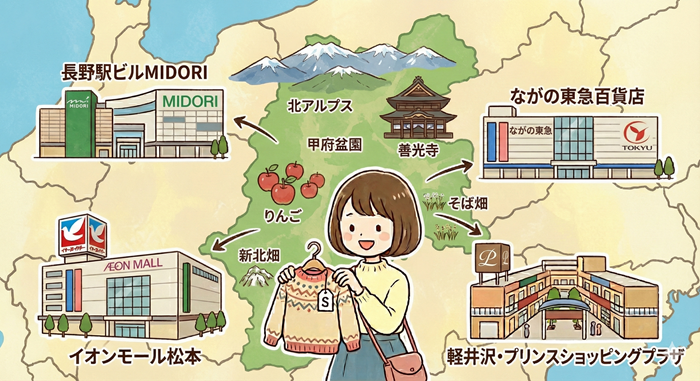 南北に長〜い長野県。 北信にお住まいなら「長野市」、中信なら「松本市」、東信なら「上田・佐久・軽井沢」と、買い物に行くエリアが完全に分かれていますよね。 「服を買うためだけに、山を越えて遠くの街まで行くのはしんどい…」というのが本音ではないでしょうか。