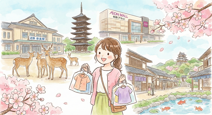 奈良県内で小さいサイズの服を探すなら、以下のルートが鉄板です。
