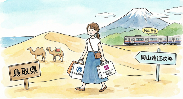 鳥取県民のリアルな買い物事情として、「本気で服を買うなら岡山に出る」という選択肢があります。 特急「スーパーいなば」や「やくも」、あるいは鳥取自動車道・米子自動車道を使えば、意外と近いです。